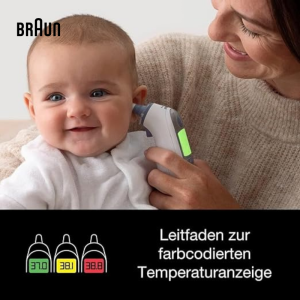 Did you know that what’s considered a fever for a 3 month old is different than that of a toddler or adult? ThermoScan 7 features the new Age Precision technology which takes the guesswork out. Easily set the age of your child (0-3 months, 3-36 months or 36 months+) and use the color coded display to quickly interpret the reading based on your child’s age.
