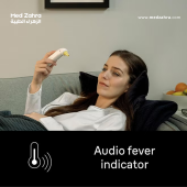 Has an audio fever indicator: different number of beeps signal whether temperature is normal (1 beep), elevated (2 beeps), or high (4 beeps).